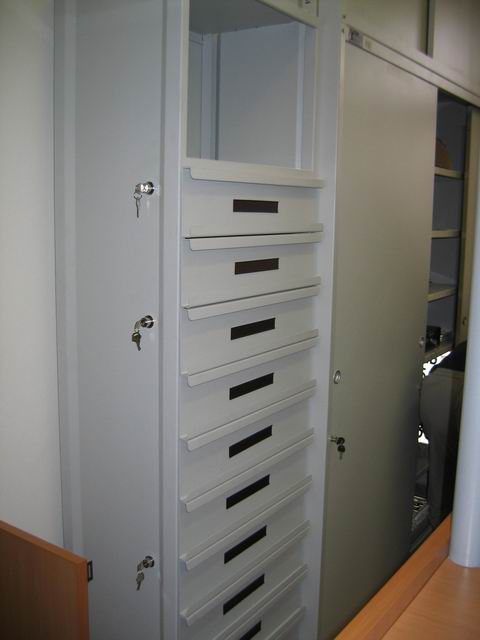 So serijskega značaja, omare neserijskega značaja pa predstavljajo nepogrešljiv del opreme v knjižnici, arhivu in skladiščih različnih gradiv ter so: